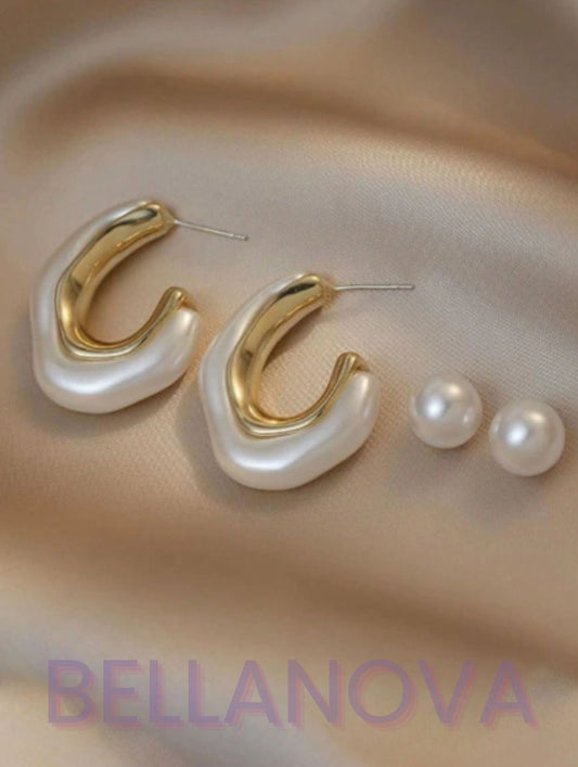 Brincos 2 em 1 Duplo Pérolas - Folheado a Ouro 18k + FRETE GRÁTIS