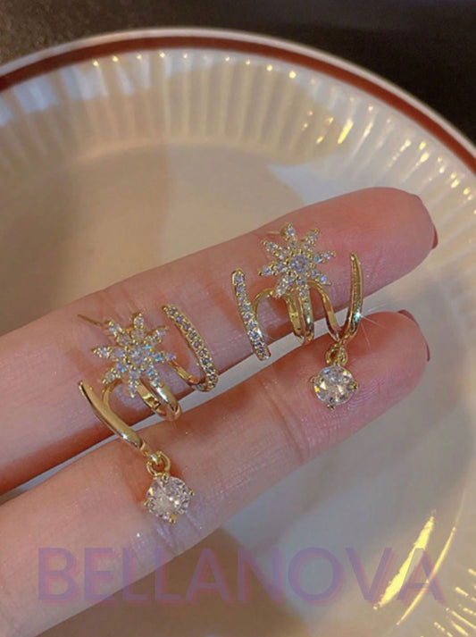 Brincos 3 Pontas - Zircônias - Folheado a Ouro 18k + FRETE GRÁTIS