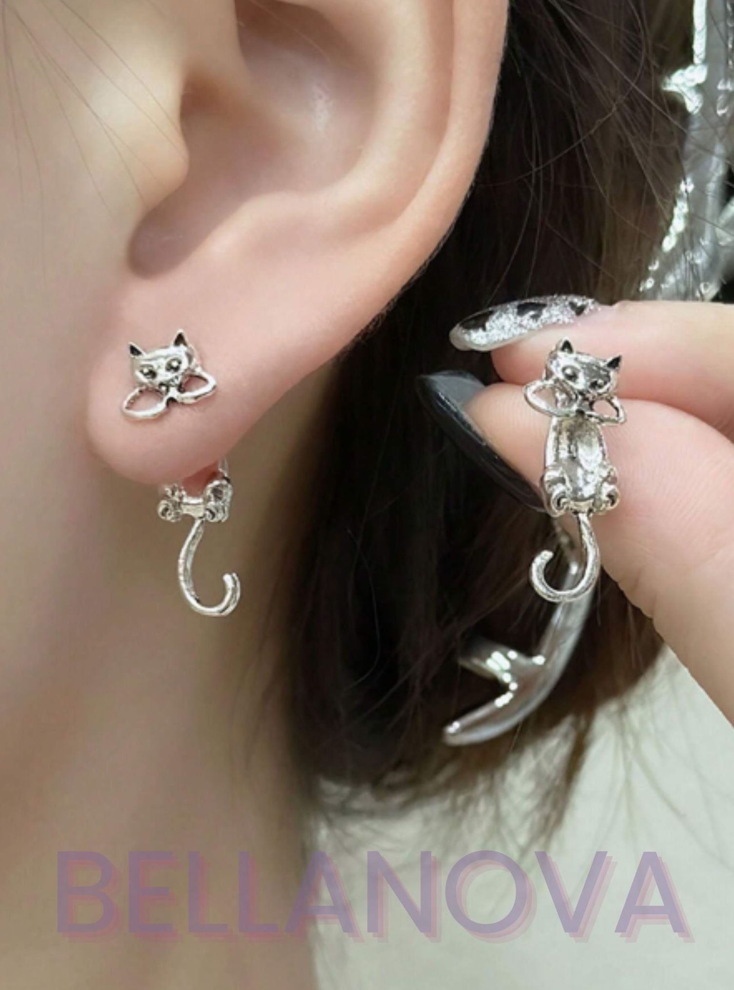 Brinco 2 em 1 Gato - Folheado a Ouro 18k+ FRETE GRÁTIS